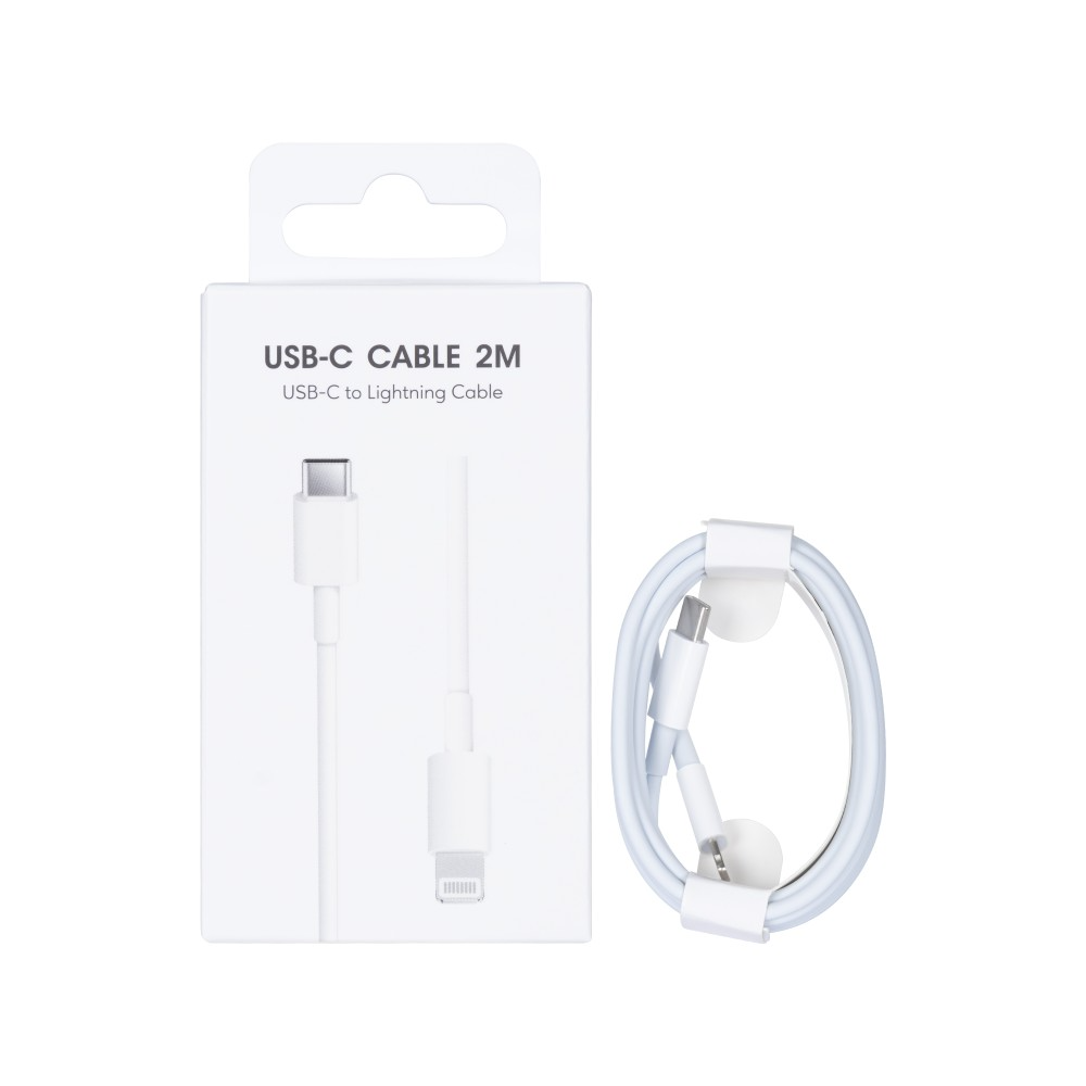 2.0 m USB‑C to Lightning cable, white, PVC jacket, retail boxed. Compatible cable offering secure connections for charging and data transfer with Apple devices, built for everyday reliability.