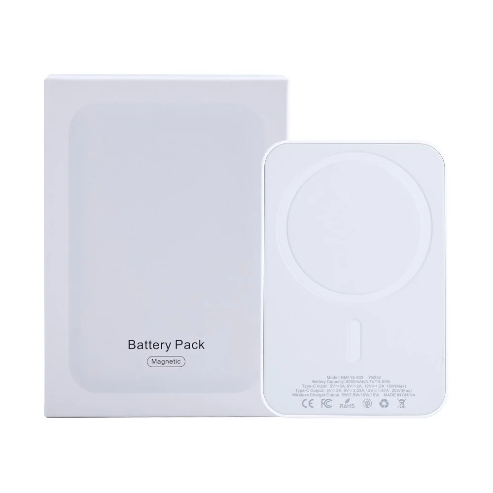 4000 mAh magnetic power bank with 15W wireless MagSafe charging in white. Compact ABS/plastic build with USB‑C input/output, magnetic alignment for effortless attachment to compatible iPhones and simple on‑the‑go top‑up power.
