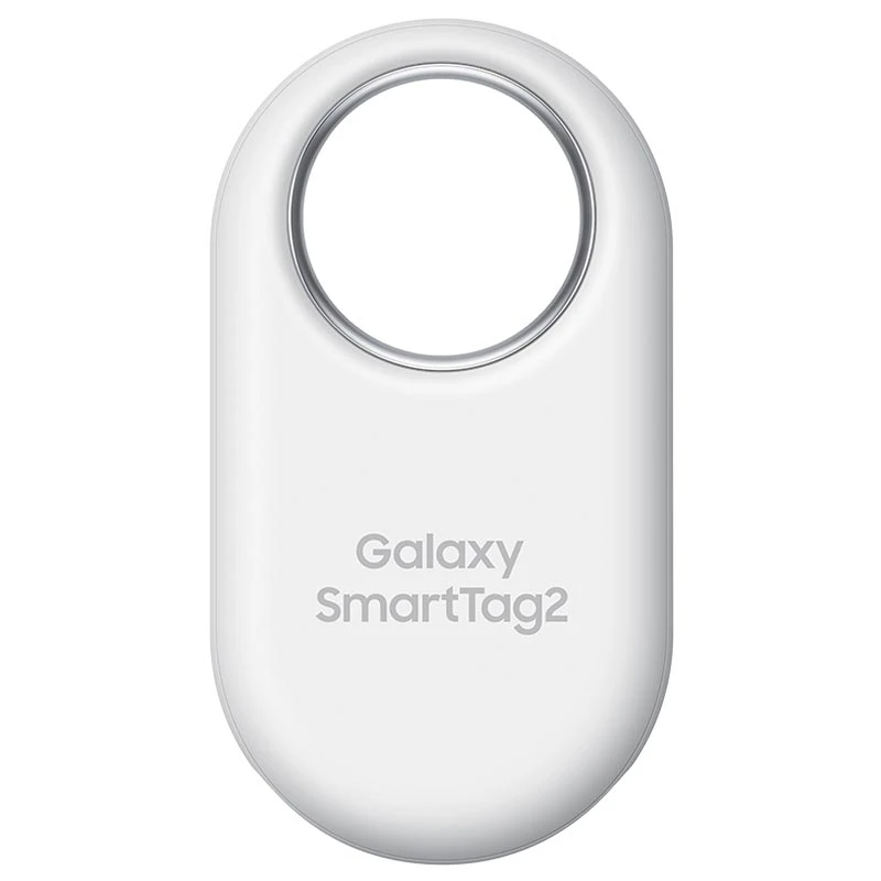 Samsung Galaxy SmartTag2 Bluetooth tracker (EI‑T5600BWEGEU) in white. Compact tracker for keys, bags or pets with robust build, seamless SmartThings integration for location tracking and dependable Bluetooth connectivity; original Samsung accessory.