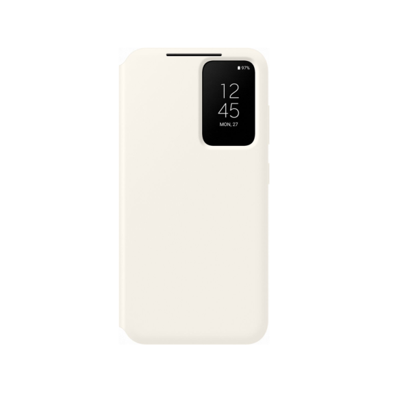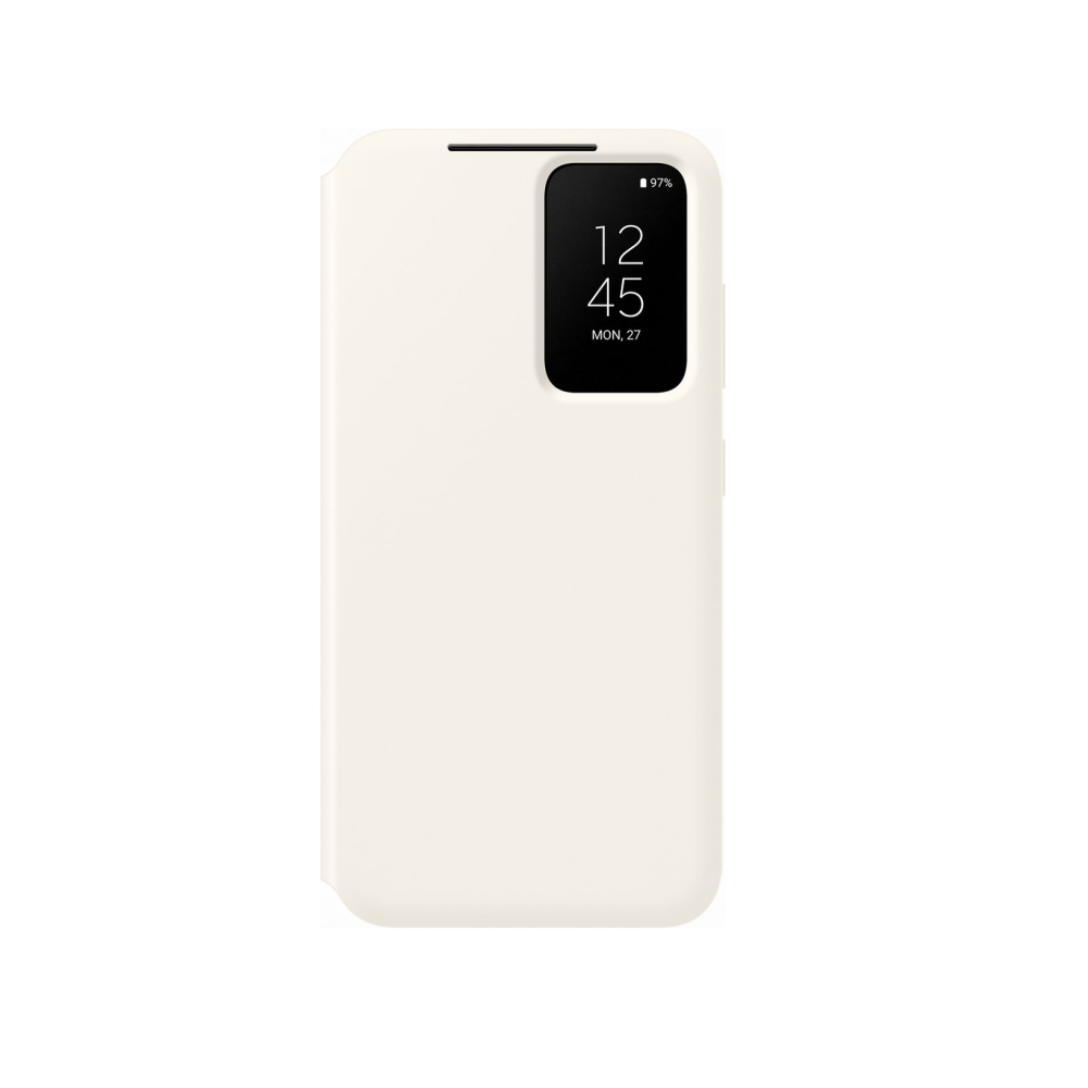 S‑View wallet case in cream for Samsung Galaxy S23 (SM S911B). Precision fit with S‑View window for glanceable notifications, integrated card slots, secure magnetic closure, durable materials and exact cutouts for full port and button access.