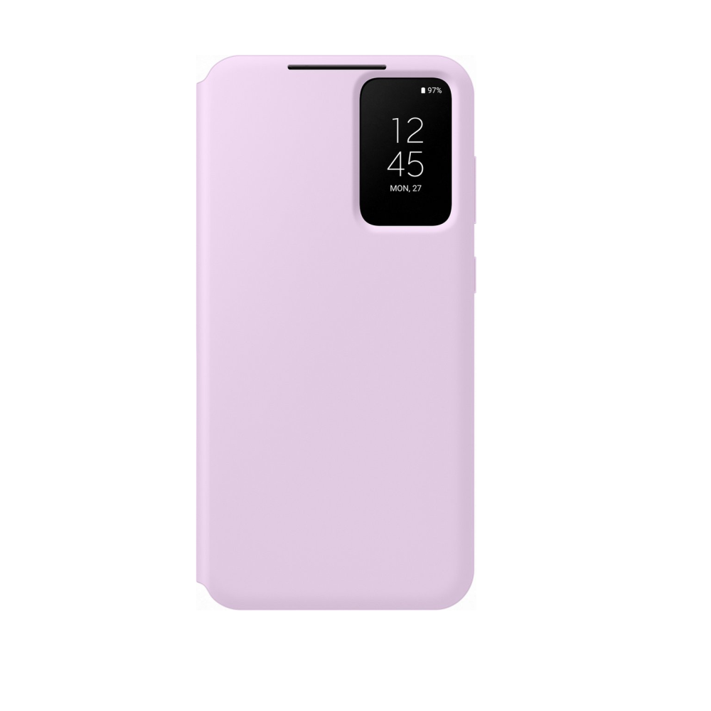 S‑View wallet case in lilac purple for Samsung Galaxy S23 Plus (SM S916B). Slim protective folio with interactive S‑View cover, multiple card pockets, reinforced edges and precise openings to preserve device functionality.