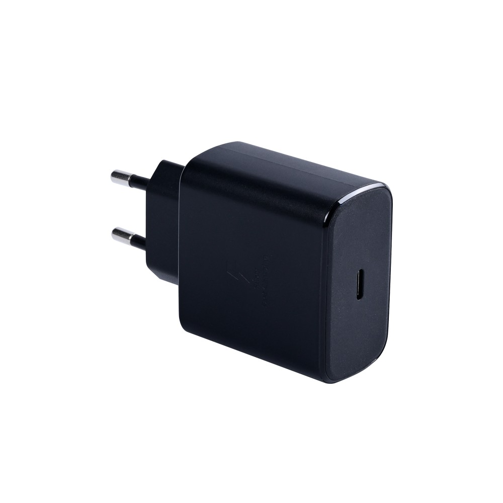 45 W USB‑C fast charger, black (bulk). Original Samsung high‑power PD adapter for rapid charging of phones and tablets; compact form factor and built for bulk/service distribution.