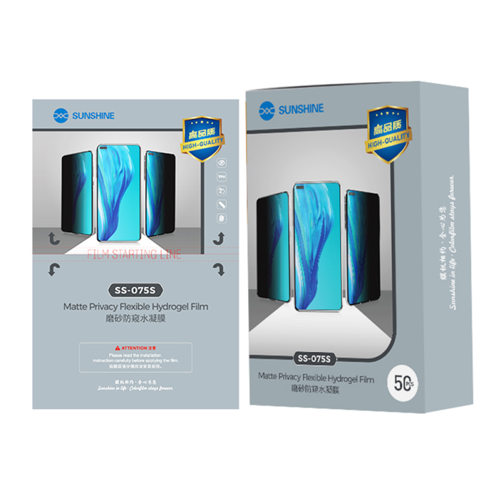 Matte privacy hydrogel with anti‑peeping technology, reduced glare and preserved touch sensitivity; 50 films per pack.