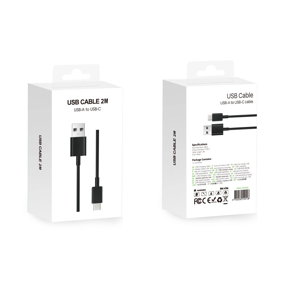 USB‑A to USB‑C data and charging cable US4002M, 200 cm, black. Durable construction for reliable charging and data transfer, extra length for flexible use at home, office or travel.
