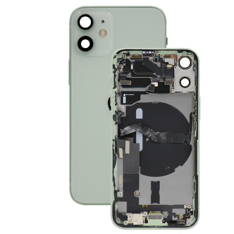 Complete rear housing with all small parts, excludes battery and back camera, Green; compatible with iPhone 12 Mini (A2399/A2176/A2398/A2400).