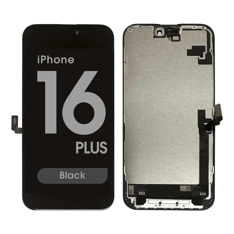 In-Cell display and Touchscreen assembly, includes frame; premium service-friendly option. Compatibility: iPhone 16 Plus (A3290/A3082/A3289/A3291).