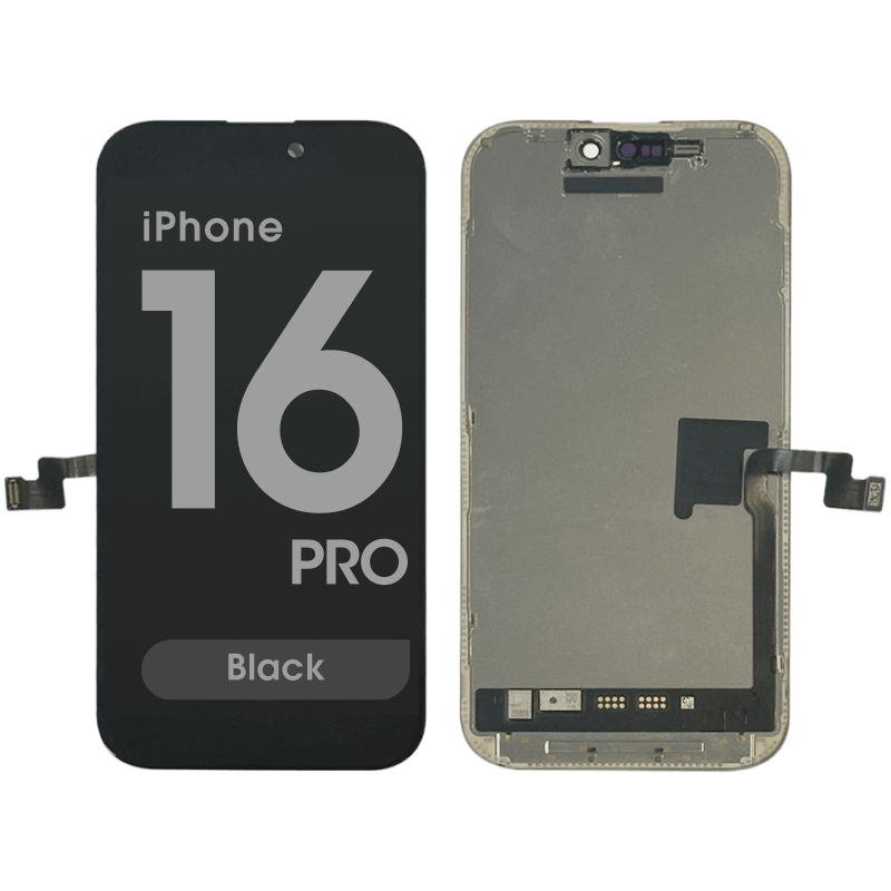 Hard‑OLED display and Touchscreen assembly, includes frame; premium high-brightness replacement (IC removable). Compatibility: iPhone 16 Pro.
