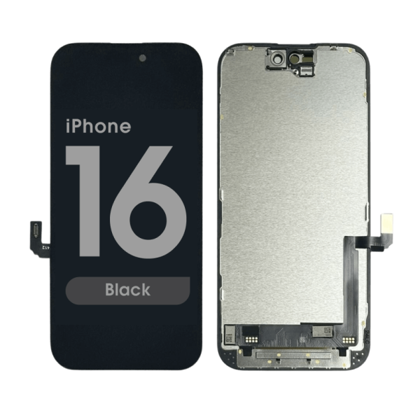 In-Cell display and Touchscreen assembly, includes frame; premium aftermarket option. Compatibility: iPhone 16 (A3287/A3081/A3286/A328).