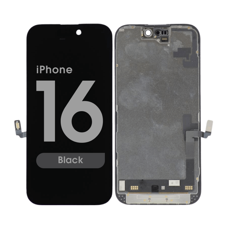Soft‑OLED display and Touchscreen assembly, 90Hz, includes frame; premium OLED option. Compatibility: iPhone 16 (A3287/A3081/A3286/A3288).