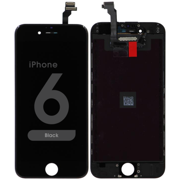 Compatible-quality display and Touchscreen assembly preassembled with metal plate and frame for iPhone 6, black bezel; restores touch and display.