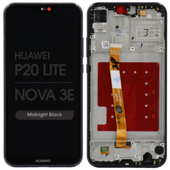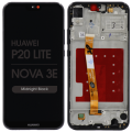 Black screen unit with frame; compatible with Huawei P20 Lite.