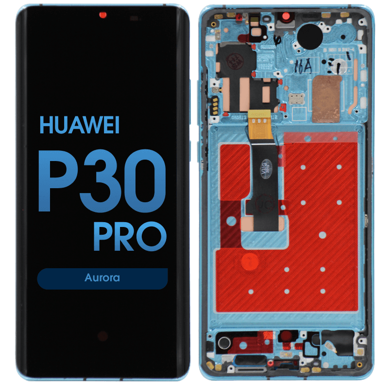 OLED screen with frame and battery; Aurora Blue variant; fits P30 Pro and New Edition.