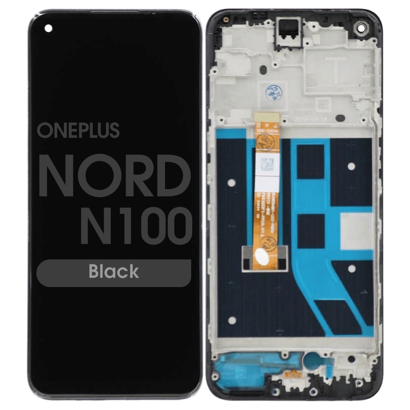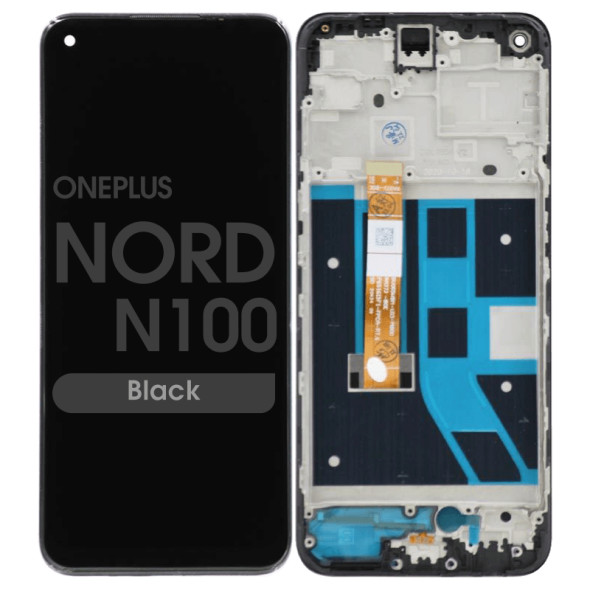 Compatible LCD panel and Touchscreen without frame for OnePlus Nord N100; intended for in-chassis replacement to restore touch and display.
