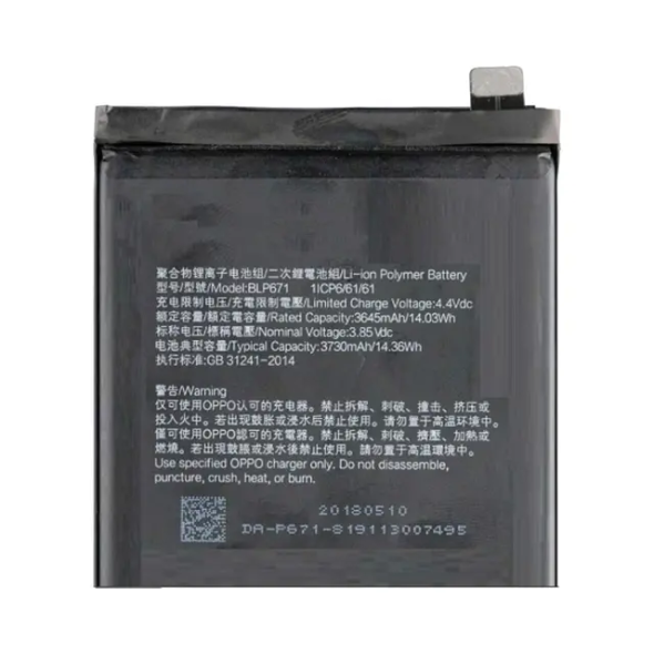 Compatible Li‑Ion 3730 mAh non‑removable battery for Oppo Find X; replacement to restore device runtime and stability.