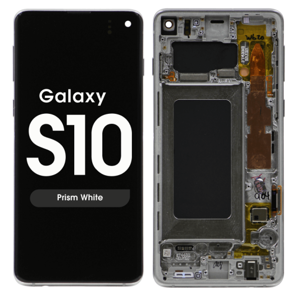 Dynamic AMOLED 6.1" 1440x3040 complete display with frame for Galaxy S10 SM‑G973F in prism white; pulled condition.