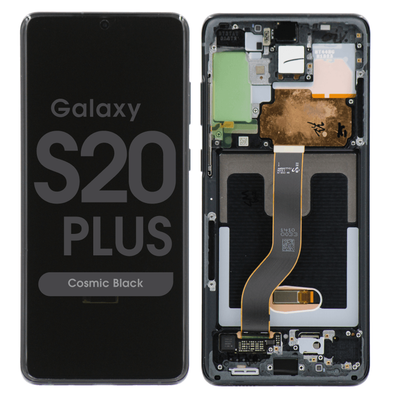 Dynamic AMOLED 2X 6.7" 1440x3200 complete display with frame for Galaxy S20 Plus SM‑G985F/G986F in black; pulled condition.