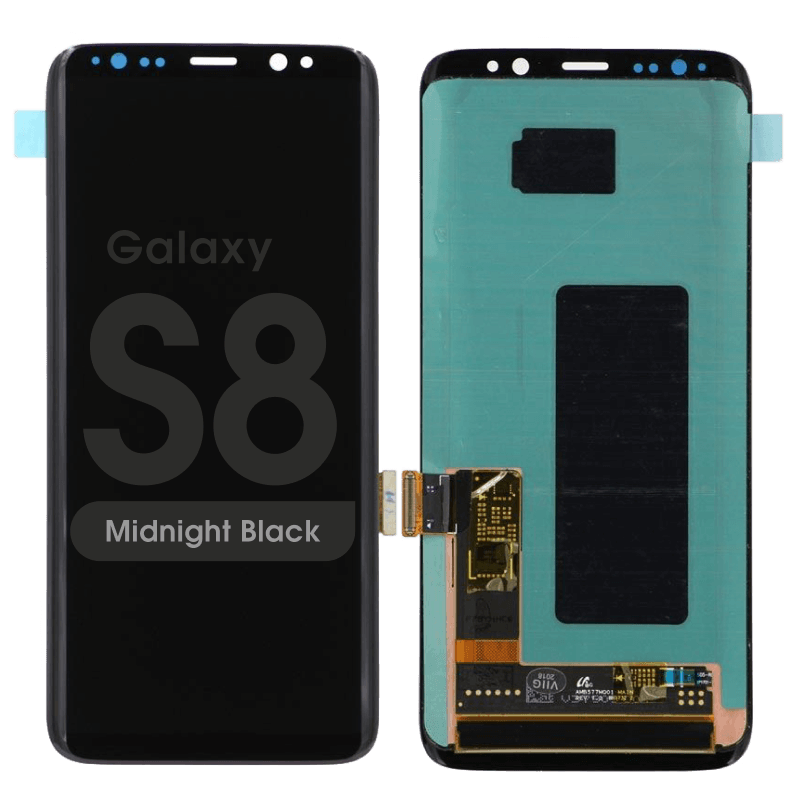 Super AMOLED 5.8" 1440x2960 complete display with frame for Galaxy S8 SM‑G950F in midnight black; pulled condition.