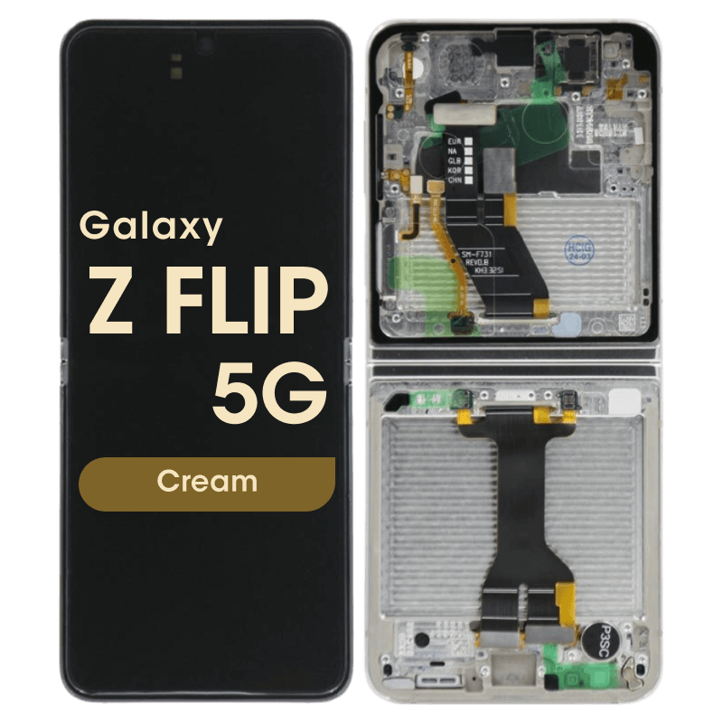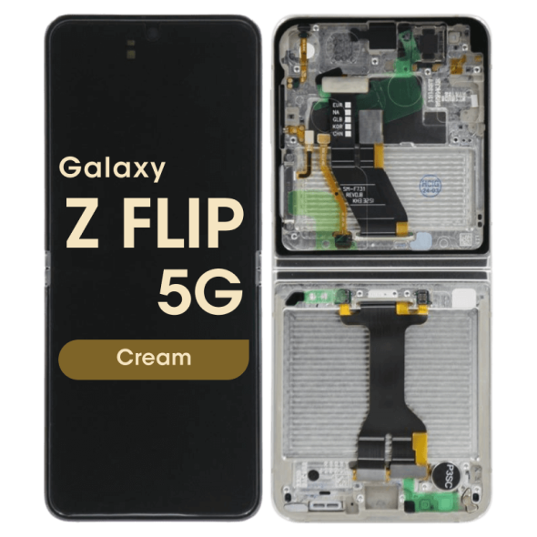 Foldable Dynamic AMOLED 2X 6.7" 1080x2640 inner display with frame for Galaxy Z Flip5 SM‑F731B in cream; pulled condition.