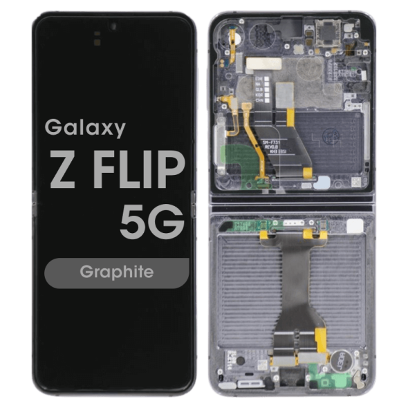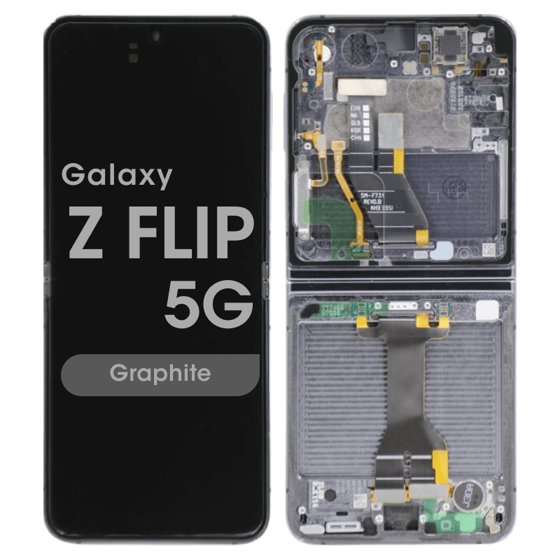 Inner display with frame for Galaxy Z Flip5 SM‑F731B in graphite; pulled condition.
