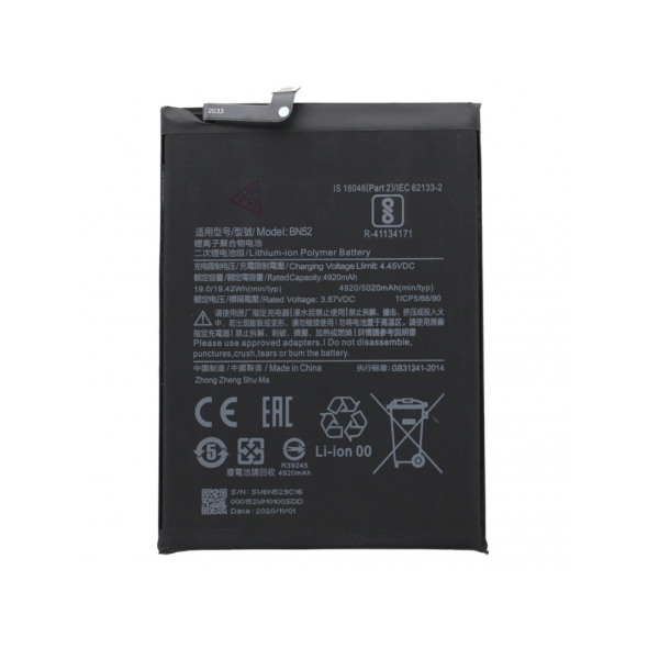 Li‑Po 5020 mAh; 18W fast charging; 9W reverse charging; replacement.