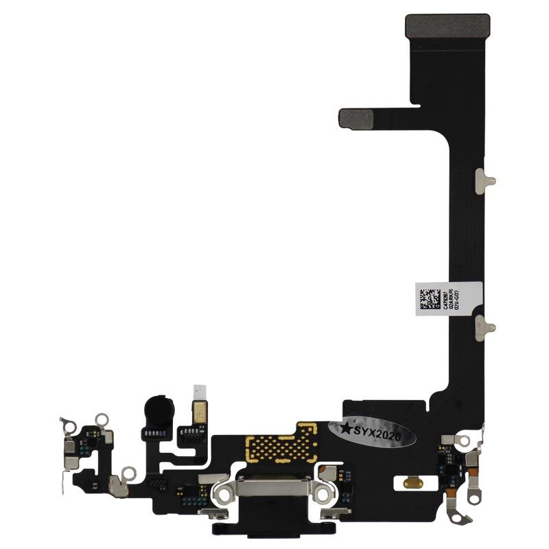 Charging port flex in Space Grey, includes microphone; pulled condition; compatible with iPhone 11 Pro (A2160/A2215/A2217).