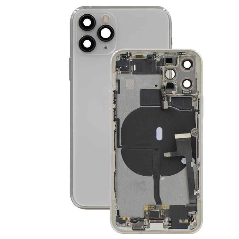 Complete rear housing with small parts, excludes battery and back camera, White; compatible with iPhone 11 Pro (A2215/A2160/A2217).