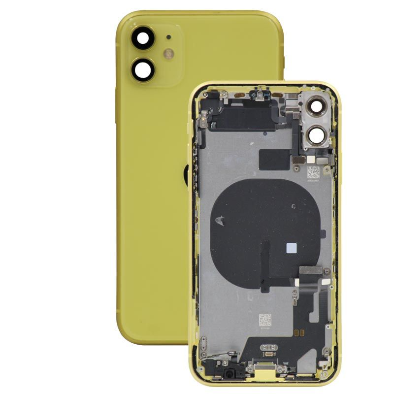 Complete rear housing with small parts, excludes battery, Yellow; compatible with iPhone 11 (A2221/A2111/A2223).