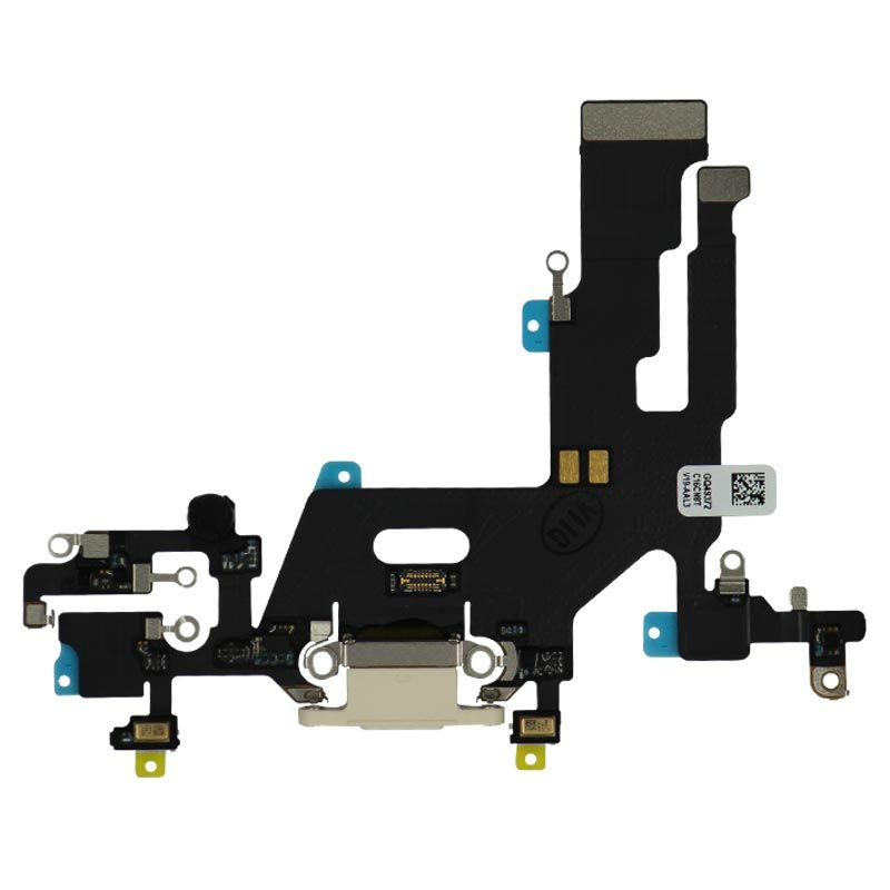 Charging port flex in White, includes microphone; pulled condition; compatible with iPhone 11 (A2111/A2221/A2223/A2160/A2215/A2217).