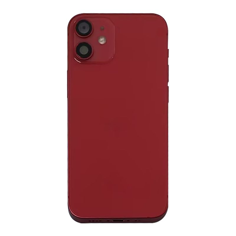 Complete rear housing with all small parts, excludes battery and back camera, Red; compatible with iPhone 12 Mini (A2399/A2176/A2398/A2400).