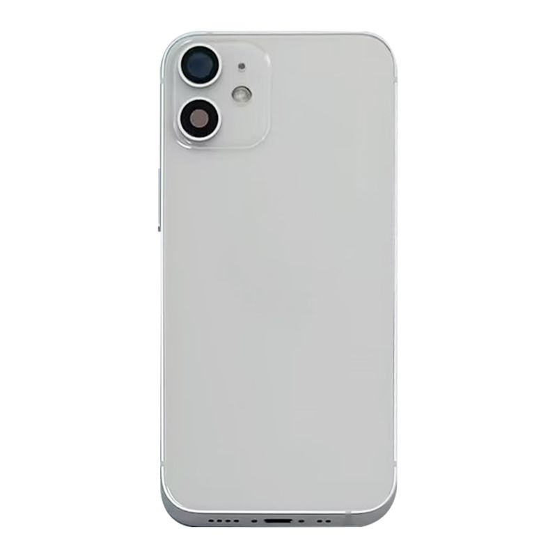 Complete rear housing with all small parts, excludes battery and back camera, White; compatible with iPhone 12 Mini (A2399/A2176/A2398/A2400).