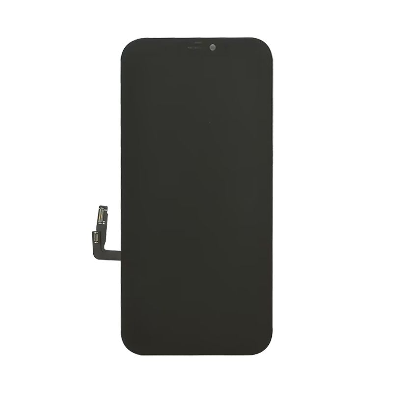 Soft‑OLED display and Touchscreen assembly, premium with removable IC, includes frame; flexible OLED option. Compatibility: iPhone 12 / 12 Pro (model codes vary).