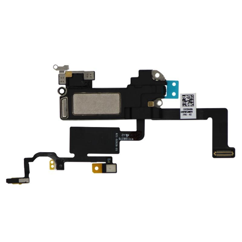 Earspeaker assembly combined with proximity sensor flex; pulled condition; compatible with iPhone 12 and iPhone 12 Pro.