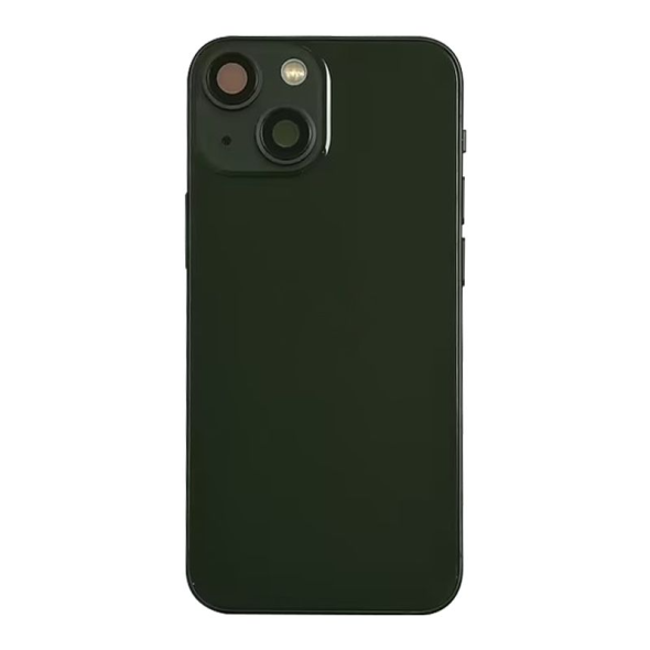 Complete rear housing with all small parts, excludes battery; compatible with iPhone 13 Mini (A2628/A2481/A2626/A2629/A2630).
