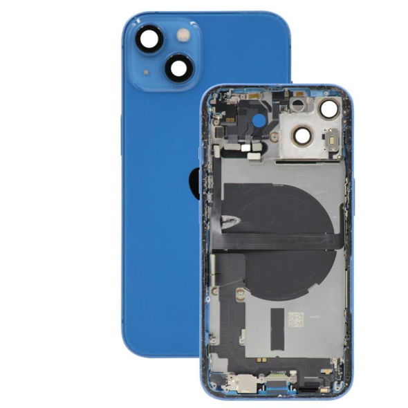 Complete rear housing with all small parts, excludes battery; compatible with iPhone 13 (A2633/A2482/A2631/A2634/A2635).