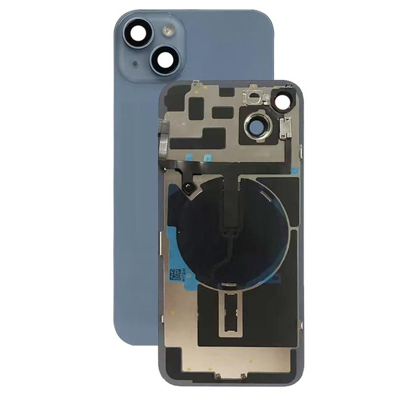 Complete rear housing with all small parts, excludes battery and back camera; Blue finish; compatible with iPhone 14 Plus (A2632/A2885/A2886/A2887/A2888).