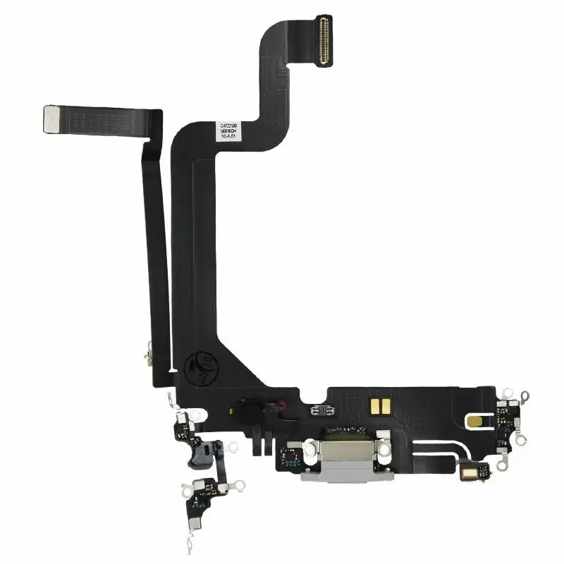 Charging port in Silver; pulled condition; compatible with iPhone 14 Pro Max (A2651/A2893/A2894/A2895/A2896).