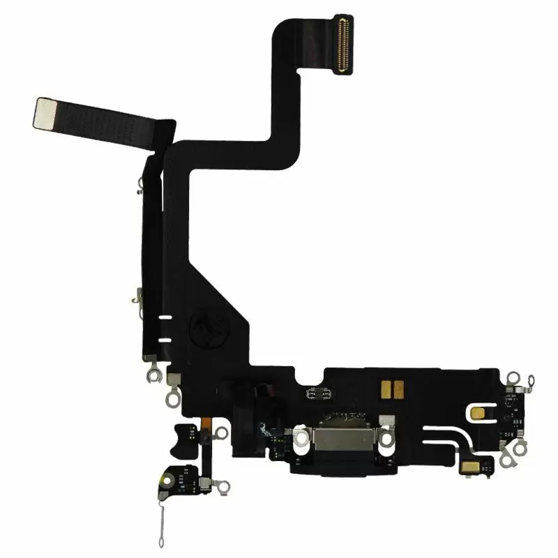Charging port in Space Black; pulled condition; compatible with iPhone 14 Pro (A2650/A2889/A2890/A2891/A2892).