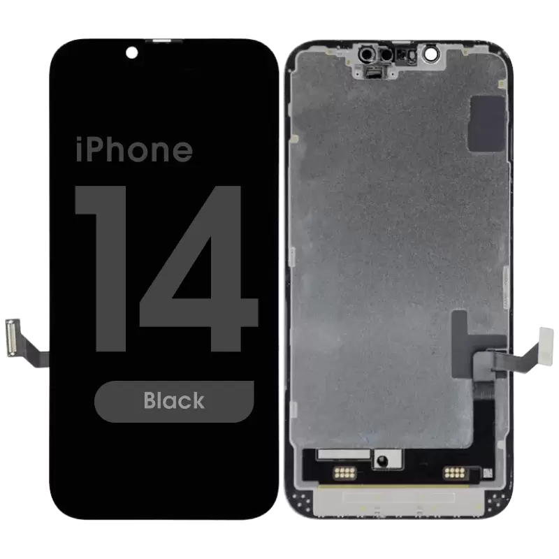 Soft OLED display and Touchscreen assembly (Soft OLED, IC removable), 120Hz, 6.1 inches, includes frame. Compatibility: iPhone 14 (A2882/A2649/A2881/A2884/A2883).