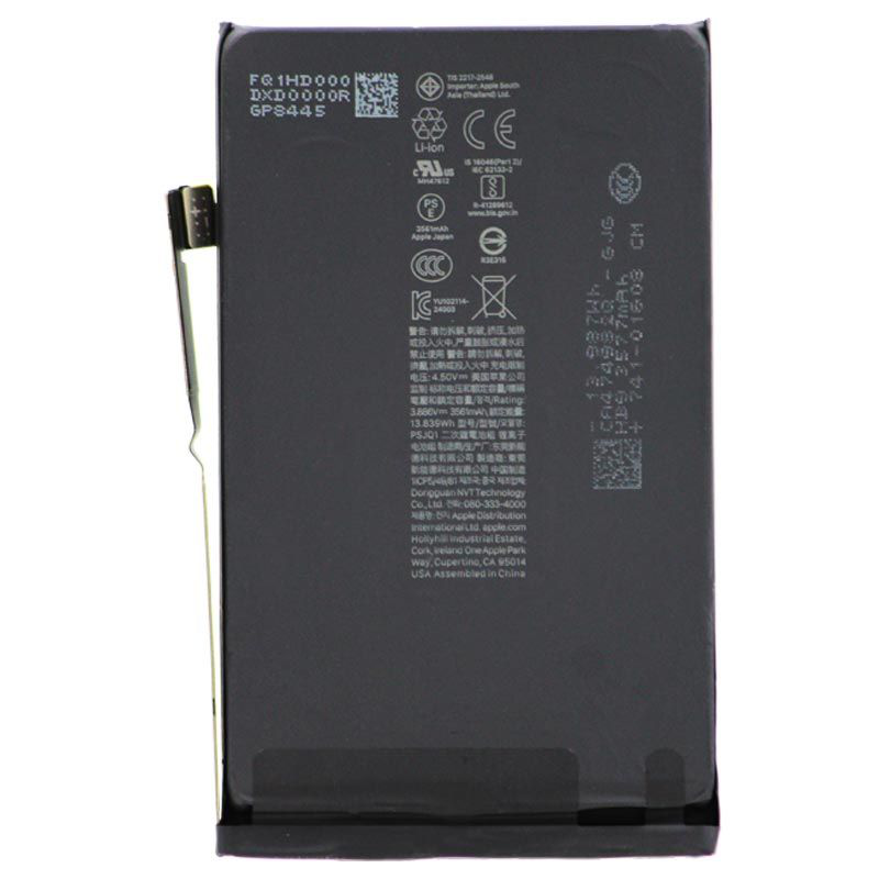 Li‑Ion battery with TI‑chip, 3561 mAh, non‑removable, 4 V, 14 W; Compatible replacement for iPhone 16 (A3287/A3081/A3286/A3288).