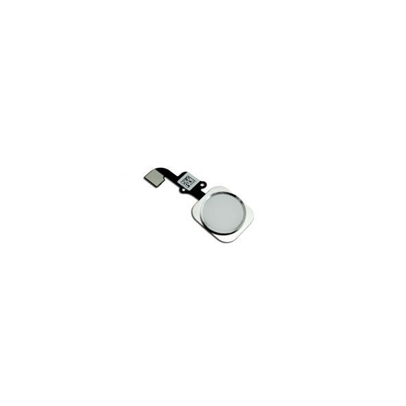 Complete home button flex assembly in White; pulled condition; compatible with iPhone 6 and 6 Plus (various model codes).