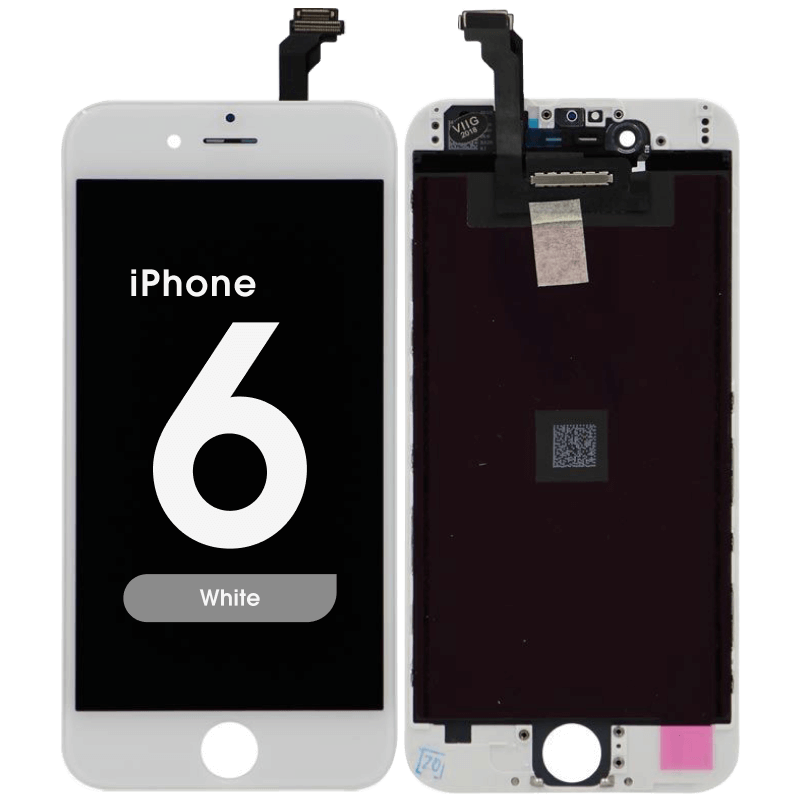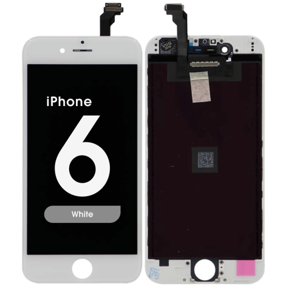 Refurbished display and Touchscreen assembly with metal plate and frame, white bezel; restores touch and display. Compatibility: iPhone 6 (A1549/A1586/A1589).
