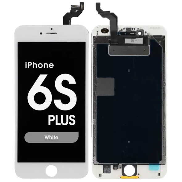 Compatible display assembly for Apple iPhone 6S Plus, white bezel, includes frame; restores touch and display. Compatibility: iPhone 6S Plus (A1634/A1687/A1690/A1699).