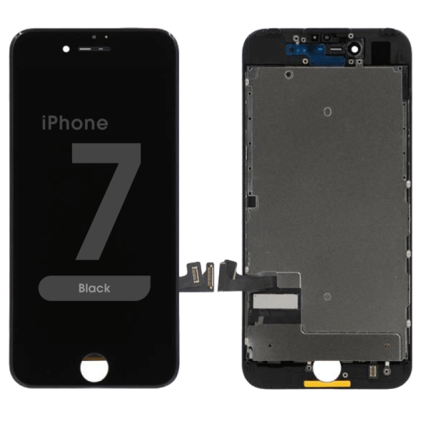 Compatible Retina IPS LCD display assembly for Apple iPhone 7, black bezel, includes frame; restores touch and display. Compatibility: iPhone 7 (A1660/A1779/A1780/A1778).