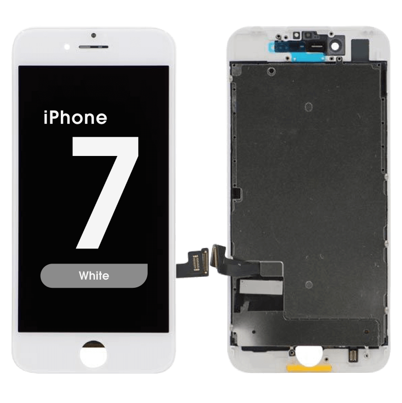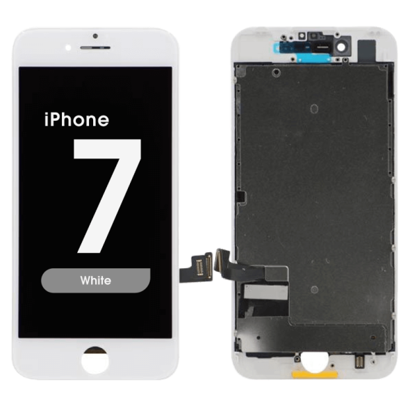 Compatible Retina IPS LCD display assembly for Apple iPhone 7, white bezel, includes frame; restores touch and display. Compatibility: iPhone 7 (A1660/A1779/A1780/A1778).