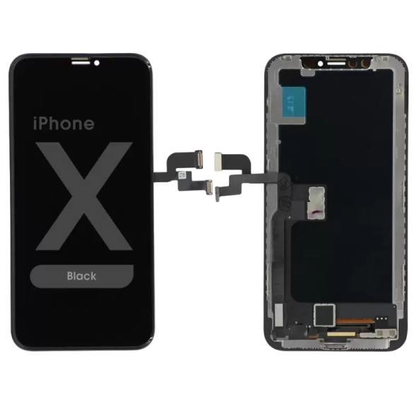 In-Cell Super Retina OLED display assembly, integrated touch, panel only (no frame); slim afterBrandt option matching Compatible resolution. Compatibility: iPhone X (A1865/A1902/A1901).