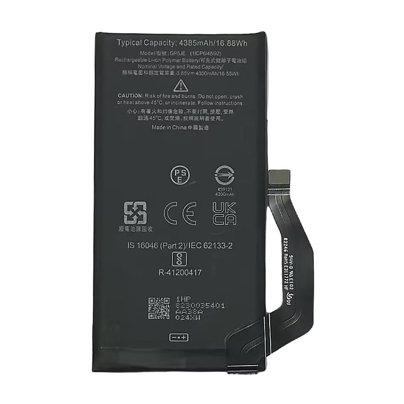 Li‑Polymer, 4385mAh; wired and wireless charging