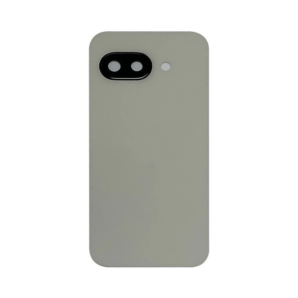 Back cover in Porcelain White with integrated camera lens; compatible with Pixel 9a (GTF7P).