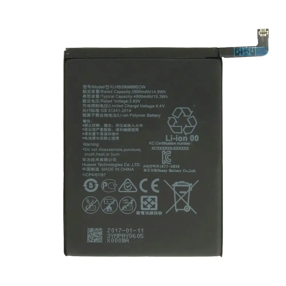 4000 mAh battery with 15 W output; fits multiple Huawei models including Mate 9 and P40 Lite E.