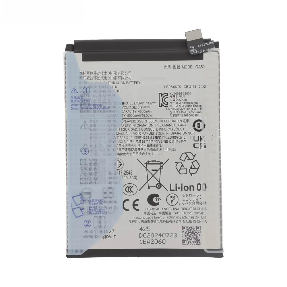 Compatible QA50 battery for Moto G55; Li‑Po non-removable cell manufactured to original specifications, see description for capacity and charging data.