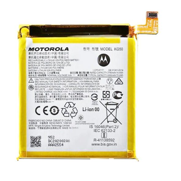 Service-pack battery compatible with Moto One Macro and Moto G8; built to meet expected charging and discharge behavior; capacity: 4000 mAh.